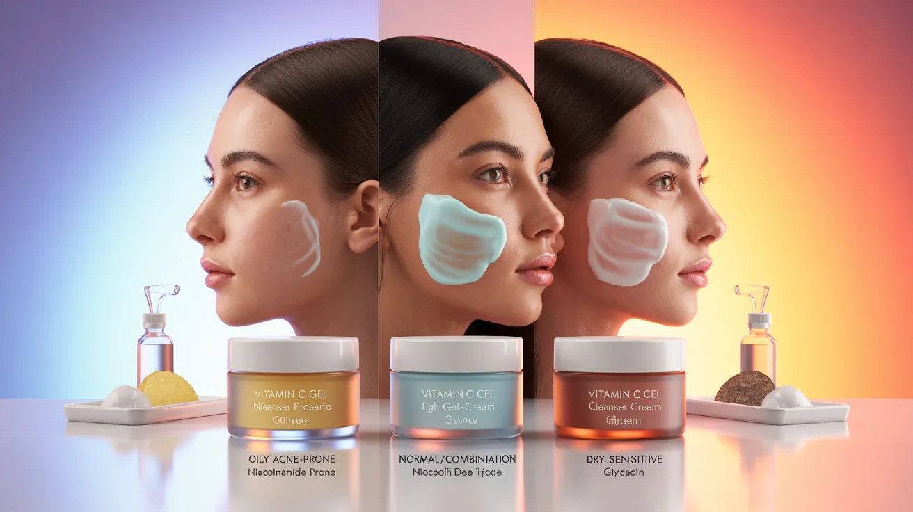 Though vitamin C cleansers suit many routines, tailoring use to your skin type decreases irritation and maximizes results. For oily or acne-prone skin, select sulfate-free gels with 5–10% stabilized ascorbate; rinse quickly to minimize disruption while maintaining Brightness Boost. For dry skin, pick cream cleansers with humectants (glycerin) and ceramides to enhance Barrier Support; cleanse once at night. If you're combination, target the T-zone with a gel and use a softer formula on drier areas.